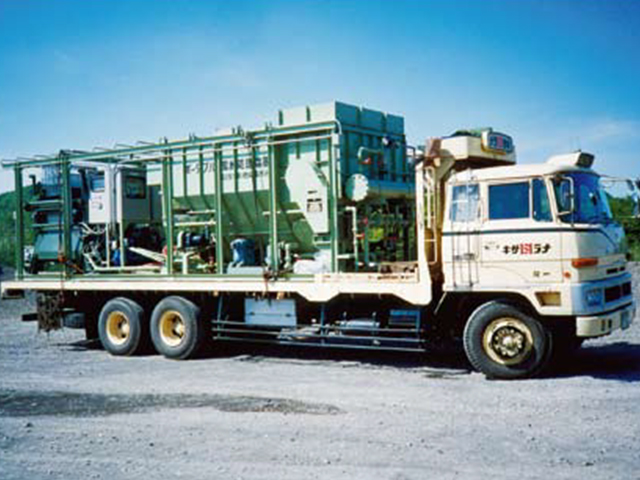 トンネル工事、一般土木工事、ダム建設工事、下水道工事、シールド工事の排水処理装置として、シックナーとフィルタープレス、PH中和装置等をコンパクトに一体化したユニット構造方式の濁水処理装置です。